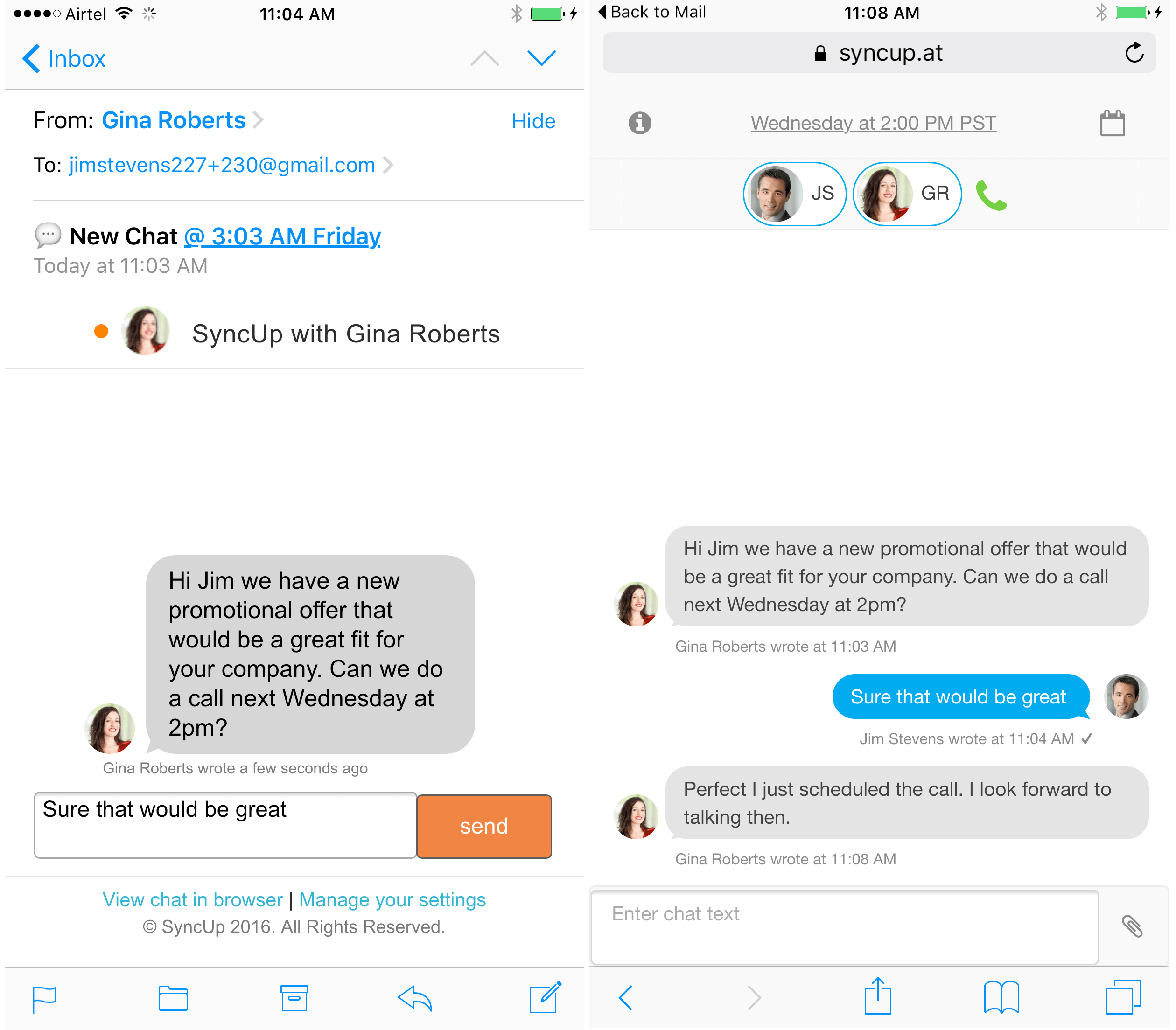 Get realtime notifications for reads, new chat and scheduled calls on any device. No app required.